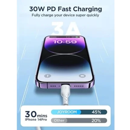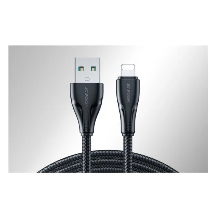كابل شحن من سلسلة فلاش تشارج جوي رووم SA26-AL3 منفذ USB نوع ايه للشحن السريع والجهة الأخرى وصلة لايتنينج للبيانات 3 امبير 1متر أسود