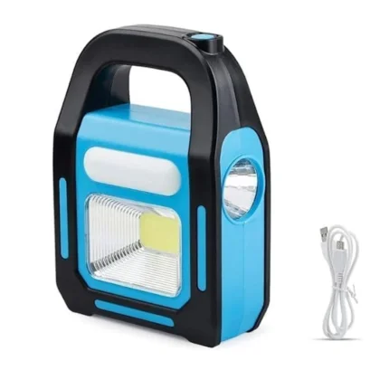 مصباح فلاش للطوارئ قابل للشحن شمسيًا أو كهربائيًا/جيركن/+ شحن شمسي/فانوس أمامي بلمبتين ليد/باور بانك لشحن الموبايل/مصباح لل/حامل باليد (أزرق)