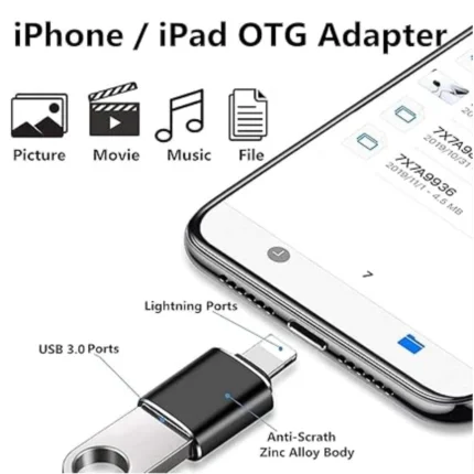 كابل لايتنينج ذكر الى USB 3.0 انثى او تي جي [معتمد من ابل] محول مزامنة بيانات باينيكا لاجهزة ايفون ايباد ايبود يدعم قارئ بطاقات الكاميرا والماوس والكيبورد والموزعات وتوصيل قرص يو – اسود