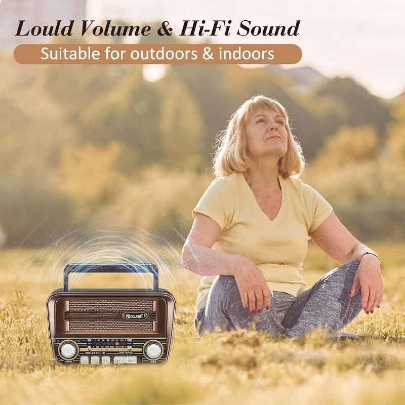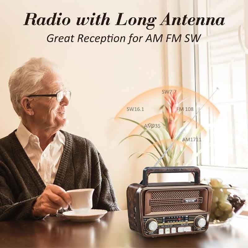 يوفّر استقبالًا واضحًا لموجات الراديو AM وFM وSW لتغطية محطات محلية وعالمية، إلى جانب اتصال بلوتوث 5.3 لبث الموسيقى لاسلكيًا من الهاتف أو التابلت. كما يدعم تشغيل الملفات الصوتية مباشرة من وحدات التخزين عبر منفذ USB وبطاقة TF، ما يتيح لك الاستماع بدون إنترنت.