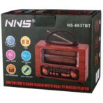 يأتي راديو محمول NS-6637BT – بلوتوث وFM/AM وستيريو بحجم محمول وخفيف الوزن، مما يجعله مناسبًا للاستخدام في المنزل، المكتب، الشاليه أو أثناء الرحلات. كما يحتوي على بطارية قابلة للشحن تضمن استخدامًا طويلًا دون الحاجة لمصدر طاقة دائم.