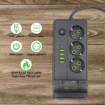 مشترك طاقة عالي الجودة بقدرة 2500 واط، مزود بـ 3 منافذ USB ومنفذ Type-C واحد، و6 مخارج كهرباء (Combo)، مع مفتاح تشغيل رئيسي، وشحن تلقائي بقوة 10 أمبير، وحماية من زيادة الحمل، وكابل بطول 2 متر | 634U