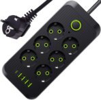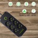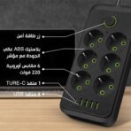مشترك كهرباء متعدد الوظائف، 6 مقابس، 4 منافذ USB + منفذ Type-C، طول 2 متر، 2500 وات، اسود – 606U