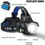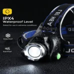 استعد لأعلى مستويات الرؤية في الظلام مع مصباح رأس LED القابل لإعادة الشحن – موديل T004، المصمم خصيصًا ليمنحك إضاءة قوية وثابتة لجميع الأنشطة الخارجية مثل التخييم، المشي لمسافات طويلة، الصيد الليلي وركوب الدراجات.