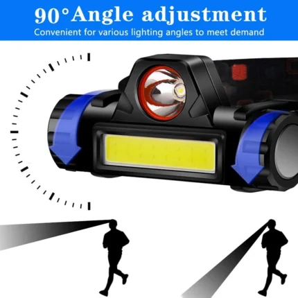 كشاف امامي LED قابل لاعادة الشحن عبر USB، مصباح مقاوم للماء بتصنيف اي بي اكس 4 مع مغناطيس خفيف الوزن، كشاف امامي بطوق رأس قابل للتعديل للتخييم وركوب الدراجات والجري والصيد