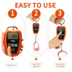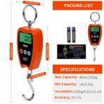 مقياس رافعة رقمي 300 كجم/660 باوند 200 كجم/440 باوند مع مصباح ليد صغير محمول باليد للجراج والمزرعة والصيد وما الى ذلك من اوتميت (200 كجم/غلاف بلاستيكي/برتقالي)
