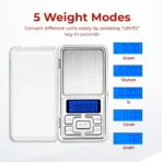 ميزان رقمي بوكيت للجيب ، ميزان وزن محمول 0.01 غرام – 200 غرام، ميزان جيب صغير عالي الدقة للذهب والمجوهرات، ميزان مطبخ رقمي للطعام والاعشاب والقهوة مع شاشة LCD باضاءة خلفية