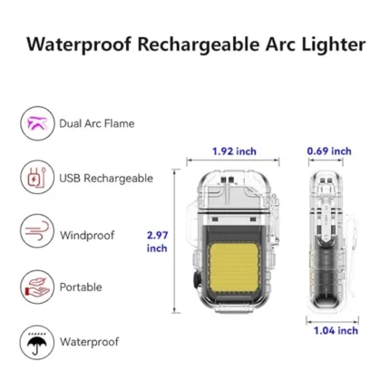 ولاعة بلازما مقاومة للماء وقابلة لإعادة الشحن بمنفذ USB، ولاعة بقوس مزدوج مقاومة للرياح مع مصباح يدوي، صندوق هدايا متضمن كابل نوع سي وحبل قصير، لون أسود
