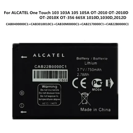 بطارية بديلة موديل CAB3010010C1 متوافقة مع أجهزة ALCATL CAB3010010C1 CAB30M0000C1 CAB2170000C1 CAB22B0000C1 CAB30M0000C1 CAB2170000C1 CAB22B0000C1 | السعة 750 mAh
